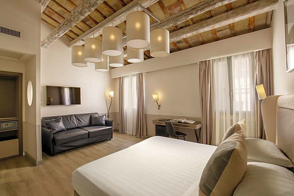 This air-conditioned triple plus double room is located in Via della Croce 15, 49 feet from the main building, where guests need to check in and check out.